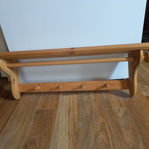 Hylle med knagger, heltre furu, L60, D19 kr 100,-
