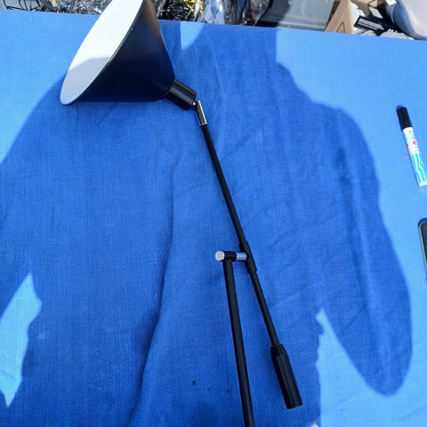 Elegant, toarmet, svart vegglampe med roterbare skjermer og svingbare armer.