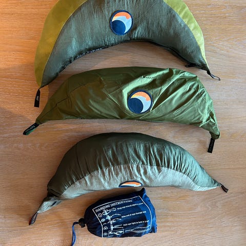 Den er brukt bare én gang på en overnattingstur. Den selges sammen med stropper fra Bergans, myggnett fra McKINLEY og trebeskyttere. Perfekt julegave! :)