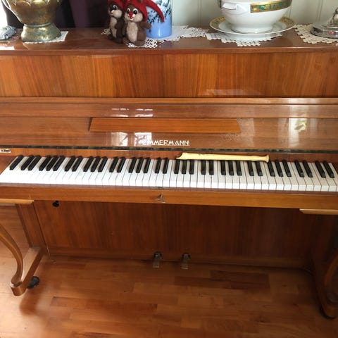 Fint piano som også funker fint, trenger stemmes. Fin møbel i stua. Må dessverre vike plass for tv fremover. Overflaten viser bruksmerker.