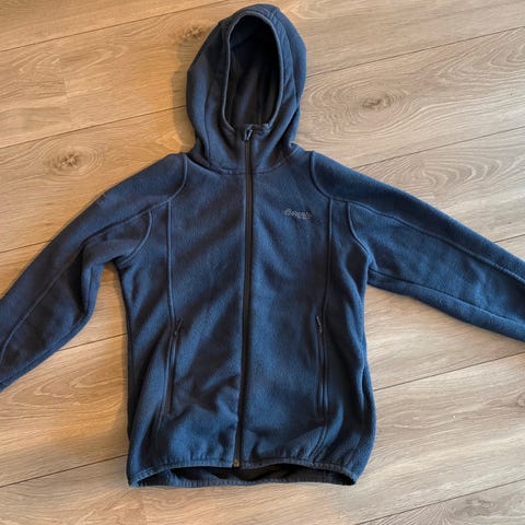 Bergans barnegenser for unisex i størrelse 152. Genseren er blå og har hette. Egnet for barn i denne størrelsen og kan brukes som et lag i kaldere vær.