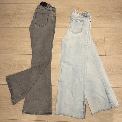 Zara bukser i størrelse 116 for jente. To par bukser i forskjellige farger, laget i stoffmateriale. 70 kr per par eller 130 til sammen.