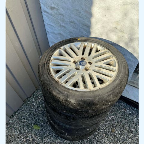 To av dekkene er nettopp skiftet på, de andre to er litt slitt