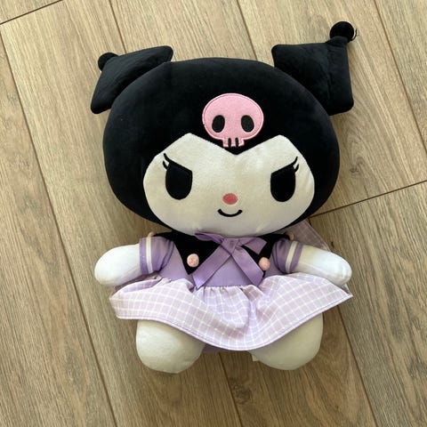 Sjarmerende Hello Kitty kosedyrsett med to myke figurer iført vakre, tradisjonelle kostymer laget i fargerik sateng. Den ene figuren har en elegant rosa og grønn kjole pyntet med blomsterdetaljer, mens den andre bærer en blå drakt dekorert med gul og svart drageprint. Begge figurene er laget av mykt og behagelig materiale, perfekt for barn som elsker Hello Kitty og vil samle eller leke med disse søte karakterene.