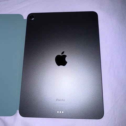 Selges: iPad Air 11 M2, 128 GB. Batterihelse: 98 % med 97 ladesykluser. Ipad alltid bruket med deksel.