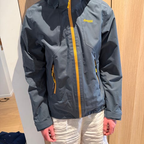 Meget fin jakke, lite brukt, søker ny eier. Farge mørk blå. Teknisk jakke i 2-lags vanntett og vindtett Bergans Element Active®-materiale. Jakka har gode pustegenskaper og er egnet for moderat til høyere aktivitetsnivå, i tøffe værforhold. Ny pris varierer mellom 1600-1800 kr