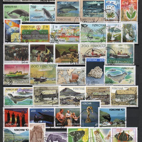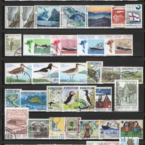 Nær komplett samling stemplet Færøyene perioden 1975-2002 i tillegg til 2 Færøyprovisorier. Noen merker for 2000 og 2001 mangler, da fortrykksarkene 43-45 mangler. Kun rundstemplede merker av god kvalitet med også en del prakt-/luxstempler. AFA-verdi er regnet til ca kr 5 800. Pris er inklusive frakt (sendes som pakke med PostNord).