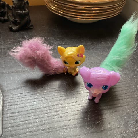 Funko Pop Spider-Gwen og Catboy figurer i plastmateriale. Spider-Gwen figuren er hvit og lilla med detaljer i rosa og blått, og har bevegelige armer. Catboy figuren er blå med grå og svarte detaljer, med bevegelige armer og ben. Passer for barn og samlere.
