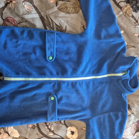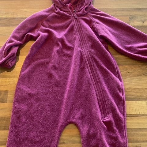 Godt brukt grønn fleecedress i str. 92 fra Vikafjell Unisex fleeceheldress 💚 Fin grønn farge. Laget av mykt fleece-materiale / 100% polyester med hette og glidelås foran. Designet for å gi varme og komfort. Brukt som sovedress / hviledress i vogn her og som mellomlag på kaldere dager ☺️ Brukt av en gutt her, men kan selvsagt brukes av begge kjønn 😊 Kan ikke se noen flekker elker hull, men nupper har den:)