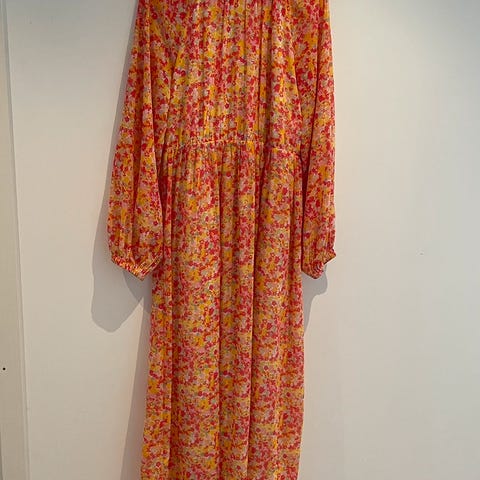 Lett sommerkjole, ankellang på meg som er 163. Størrelse L. Halterneck med knyting i nakken.