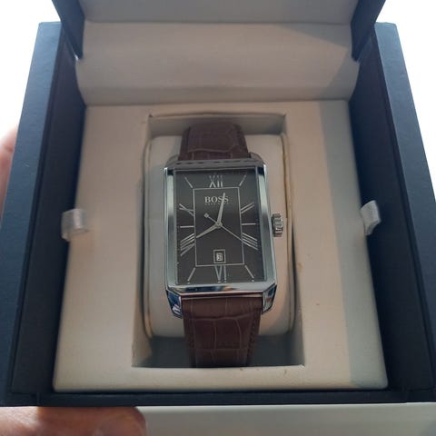 Hugo Boss Unisex Klokke med brun skinnrem og svart urskive