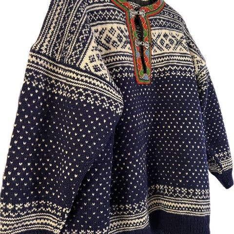 Selger pent brukt hjemmestrikket setesdalsgenser i str M/L. Selges for 500 kr.