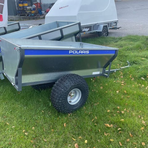 Suveren ATV-henger for bruk på gårdstunet. Liten lett ATV-tilhenger med manuell tipp av lasteplan