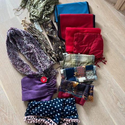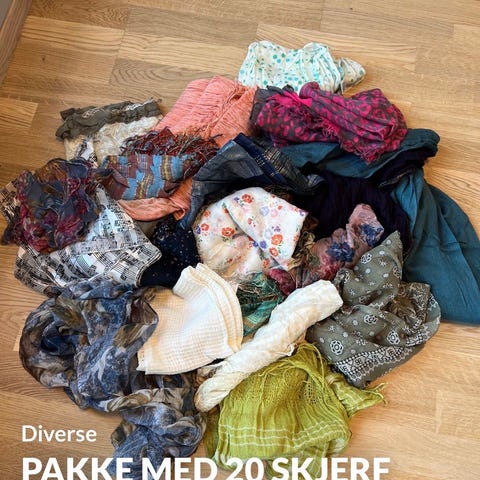 Pakke med 10 ulike skjerf. Fremstår som nye.
