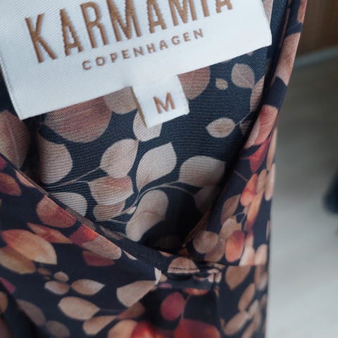 Nydelig kjole i str.S/M fra Karmamia. Coral leo. Ubrukt m/tag. Deilig stoff som ikke krøller og som svøper seg flatterende på kroppen.