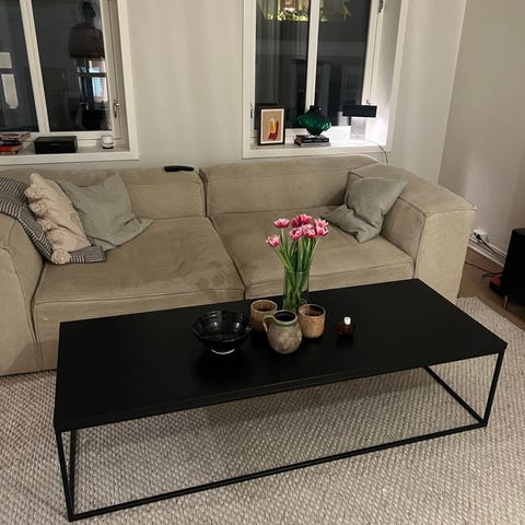 Harrison sofabord fra sixbondstreet. Det store i midten er:100x100 H 45cm.De noe på siden som går under : 94x47H 40cm. Ny pris 13064kr. Selges for 9500kr for alle 3 bordene. Sixbondstreet Slettvoll.