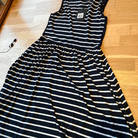 Holly & Whyte Hverdagskjole i størrelse S med flerfarget stripet mønster. Kjolen er laget av et mykt og behagelig materiale, egnet for hverdagsbruk. Den har en enkel og klassisk design med rund hals og er tilpasset kvinner.