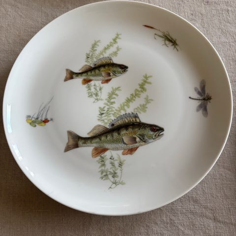 Selger pent brukte middagstallerkener fra K&A Krautheim med fiske motiv. Har fire stk. D. 25 cm Selges samlet for 200 kr.