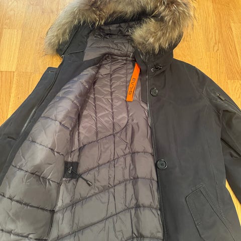 Varm og tøff jakke som holder alt vær ute. Glidelåsene er skjult, den har høy kvalitet, tåler regn, vind og kulde. Ekte pels på hetta som skjermer godt når vinden er kald. Den kan taes av. Nypris 8200kr. Selges fordi den ikke passer lenger.