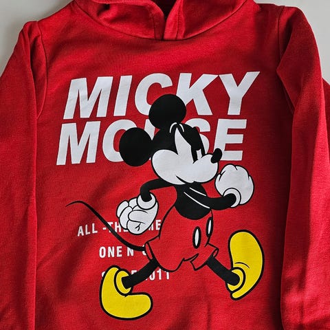 Hettegenser i sweat med mariusmønster printet str 4-5 år, helt ny med lapp