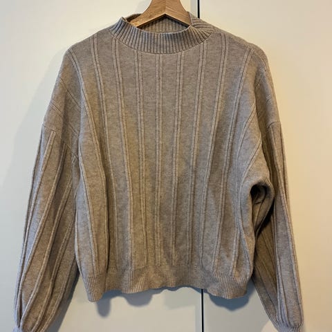 Nesten ubrukt ullgenser fra Woolland til dame (tror den har vært brukt og vasket en gang). Myk og deilig med gulldetaljer. Genseren er laget av en blanding med nylon, mohair og ull.