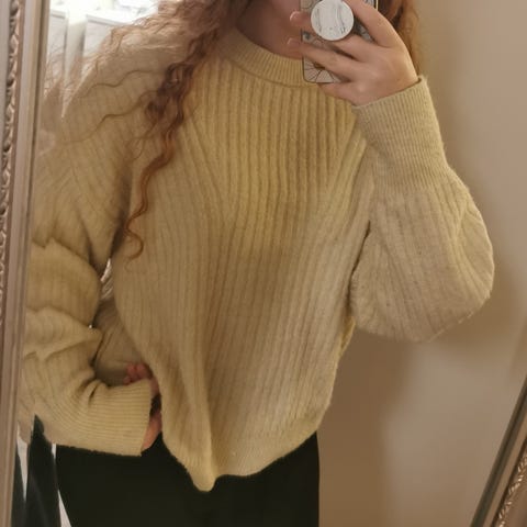 Supermyk grønn genser i onesize, passer fint opp til str 48. Lite brukt.