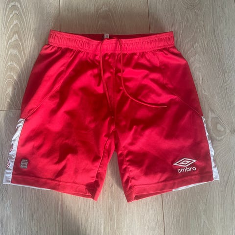 Umbro Everton fotballshorts for barn i størrelse 6–7 år (122 cm). Shortsen er blå med Everton-klubbemblem på det ene benet og Umbro-logo på det andre. Elastisk linning i livet for bedre passform. Laget av 100 % polyester, egnet til fotball og annen fysisk aktivitet.