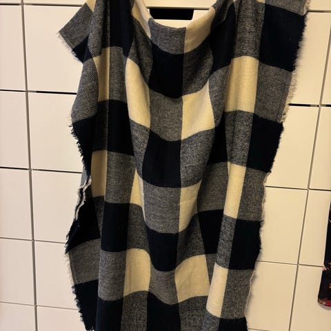 Grå/hvitrutete, teppe-ish, ullskjerf med frynser. 100% ull.