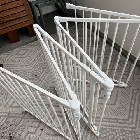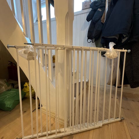 Selger to pent brukte sikkerhetsgrinder som passer perfekt til trapp eller døråpninger. Grindene er solide og enkle å montere, og gir god trygghet for både småbarn og kjæledyr.