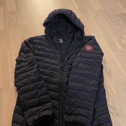 Pent brukt tynn dunjakke. Ingen skader. Står str 164 i den, men er liten i str så ligner mer en 152.
