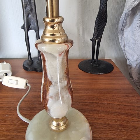 Nydelig bordlampe i grønn marmor fra UK, med tilsvarende støpsel. Total høyde 32,5 cm.
