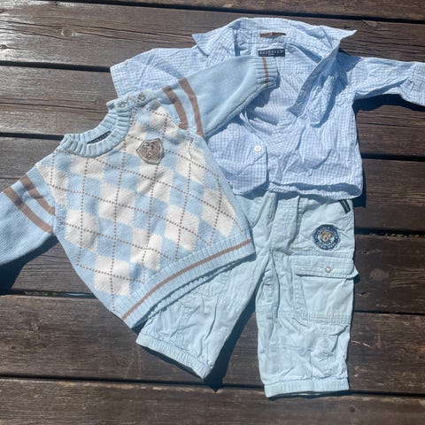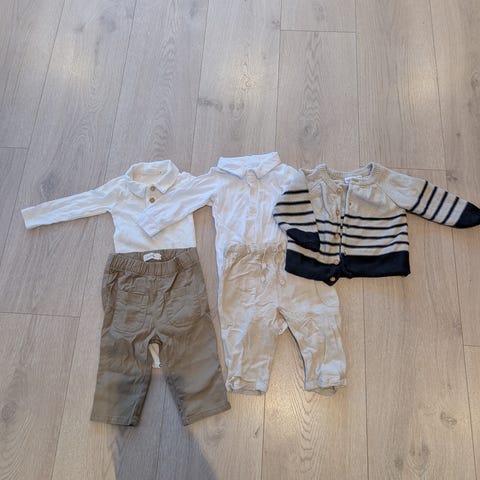 Liten klespakke som består av to skjortebodyer, cardigan og bukse fra NameIt. Alt er i str. 56.