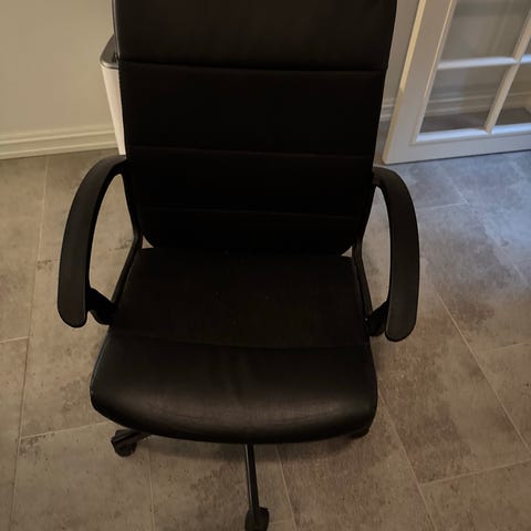 En kontorstol, passer best som "leksestol" for litt eldre barn og unge da den er litt for liten for meg. Sittehøyden kan stilles trinnløst fra 40 til 50 cm. Spesiell skrunøkkel for montasje medfølger. Ferdig montert. Fargegjengivelsen på bildet er litt upresis. Trekk i grått, fot blankforniklet med sorte hjul. 5 ben. Hentes i Hønefoss eller kan bringes i Ringerike/Hole/Jevnaker for kr 100.-