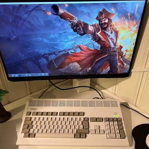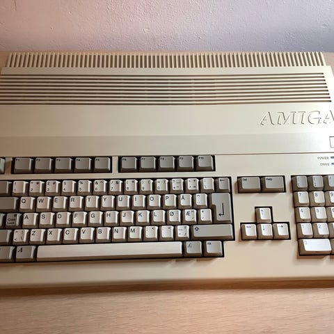 Amiga 500 med joysticks og spill uten skjerm