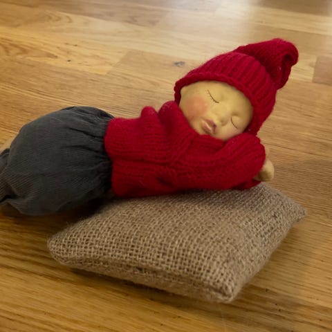 Stor Julenisse med keramikk-sko fra Julehuset i Drøbak til salgs