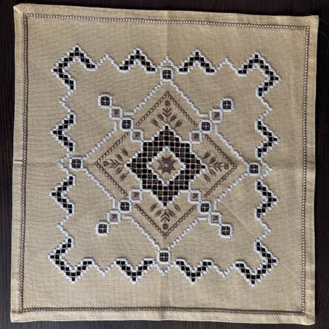 Rosa duk med Hardangermønstee