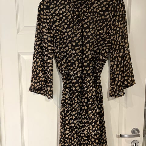 Fin kjole med v-utringning foran og slankende rynker i venstre side av midjen.
