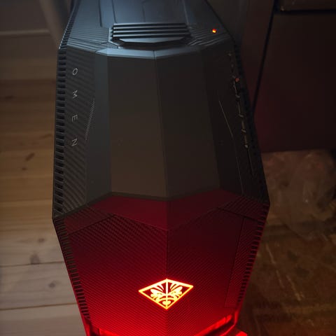 HP Omen Gaming Desktop med AMD Ryzen 5 5600G-prosessor, 16 GB RAM og høyhastighets ytelse. Enheten har kraftig grafikk, tilpassbart og kompakt design, egnet for gaming og krevende databruk.😊