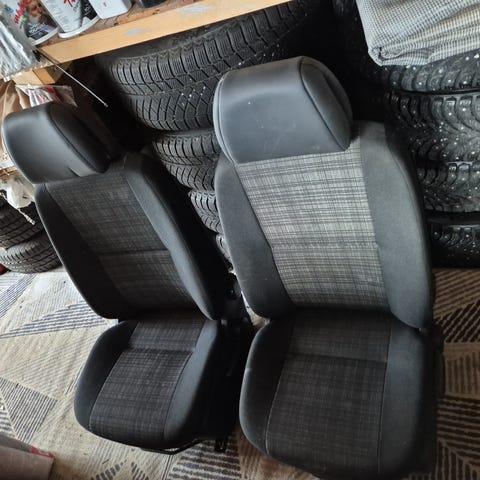 Selger et sett med stoler, fører +passasjer, til VW Karmann Ghia, tidlig 60tall.