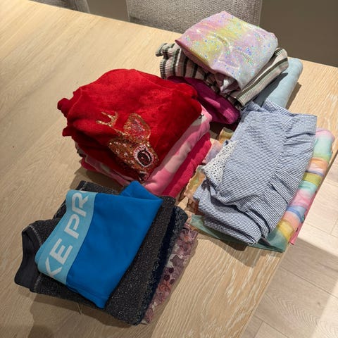 Bl. a Bergans Fleece jakke, genser, pysj, fleece jakker, bukser og gensere. Refleksvest, ull strømpebukse, noe med glitre etc. se bildene