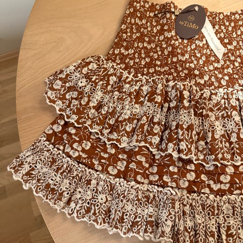 "Taffeta Fitted Skirt" fra byTiMo i printet Midnight Flowers. Skjørtet har et nydelig print. Skjørtet er tettsittende, har splitt nederst bak og er ankel lengde. Skjørtet er normalt i størrelsen, med god stretch.