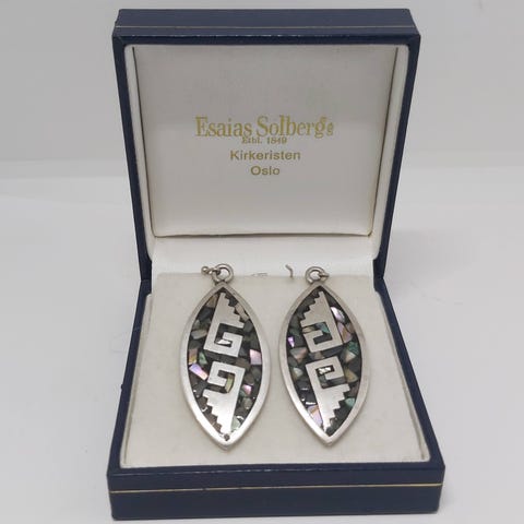 Selger disse sølv øredobbene, vintage nativ amerikanske Zuni- turkis sten og abalone skjell dekor, utrolig fin stand på disse. Stykke historie og veldig vakre.