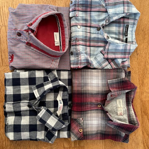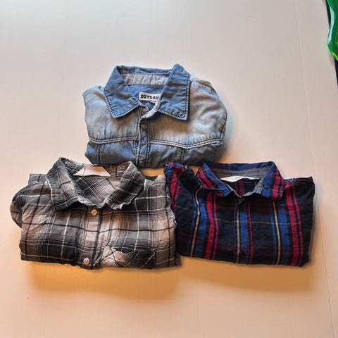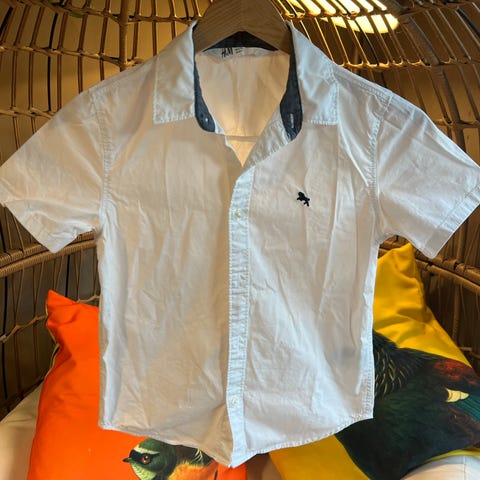 3 stk skjorter i str 134 fra H&M. Den hvite har en liten flekk på magen.