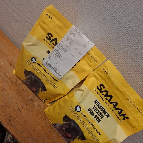 Selger 3 poser uåpnet hundemat