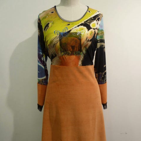 Signe Halle har laget denne kjolen som jeg kjøpte som kunsthåndverk på 1980-tallet