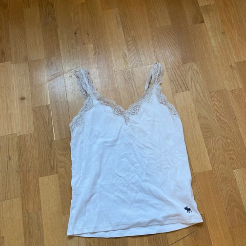 Abercrombie & Fitch singlet i størrelse XL, svart farge. Laget av ribbestrikket materiale med dekorativ kantdetalj på skulderstroppene.