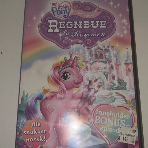 My Little Pony Regnbue På Rømmen DVD barnefilm med norsk tale. Inneholder bonus-episode og egnet for barn. DVD-en leveres i standard plastomslag.