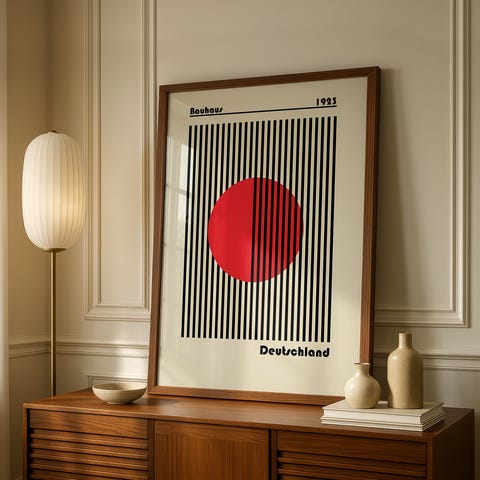 Selger dette trykket av Bauhaus kunst som er klar til å rammes inn dersom du ønsker det.
