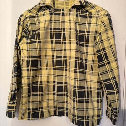 Ekte vintage selskapsjakke fra Silbor Fashion. Skulderputer. 98% polyester. Gull- og messingfaget stoff. En knapp foran. Jakkeslagene kan brettes ut om ønskelig. Foret. Størrelse 38, se mål under. Meget pen. Lengde fra overkant skulder til nedre kant ca 50 cm. Omkrets under armene ca 100 cm, liv ca 100 cm. Billigste porto. Se også mine øvrige annonser (trykk på min profil for å se annonsene).