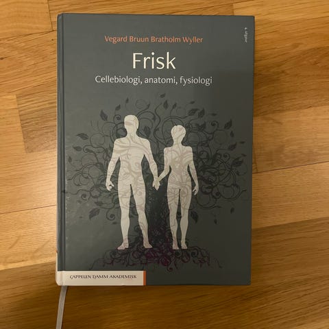 Cappelen Damm Akademisk Frisk Cellebiologi, anatomi, fysiologi lærebok. Boken dekker emner innen cellebiologi, anatomi og fysiologi, og er relevant for studier innen helse og medisin. Teksten er på norsk og boken er egnet for studenter og fagpersoner som ønsker en grundig innføring i disse fagområdene.